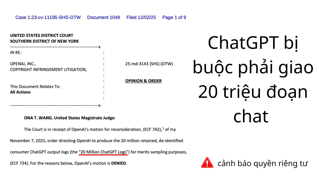ChatGPT bị buộc giao nộp 20 triệu đoạn chat: Cảnh báo quyền riêng tư